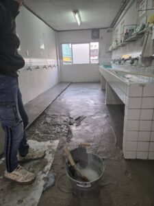 現場で培ってきた技術を寮内整備にも活かし、無事に綺麗な土間へと仕上げることができました。